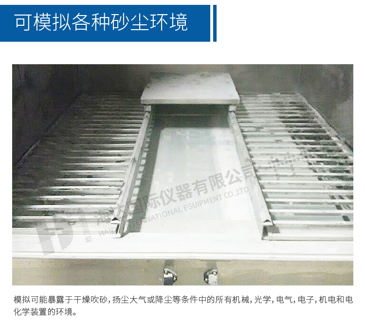 沙塵老化箱能夠提供非層流狀的載塵垂直循環氣流,可定時控制;同時可選擇配置對被試產品外殼內進行抽氣的真空泵,并可調節抽氣量和壓差;另外,箱內配置氣流溫度控制裝置,以保證試驗在標準要求的環境條件下進行.