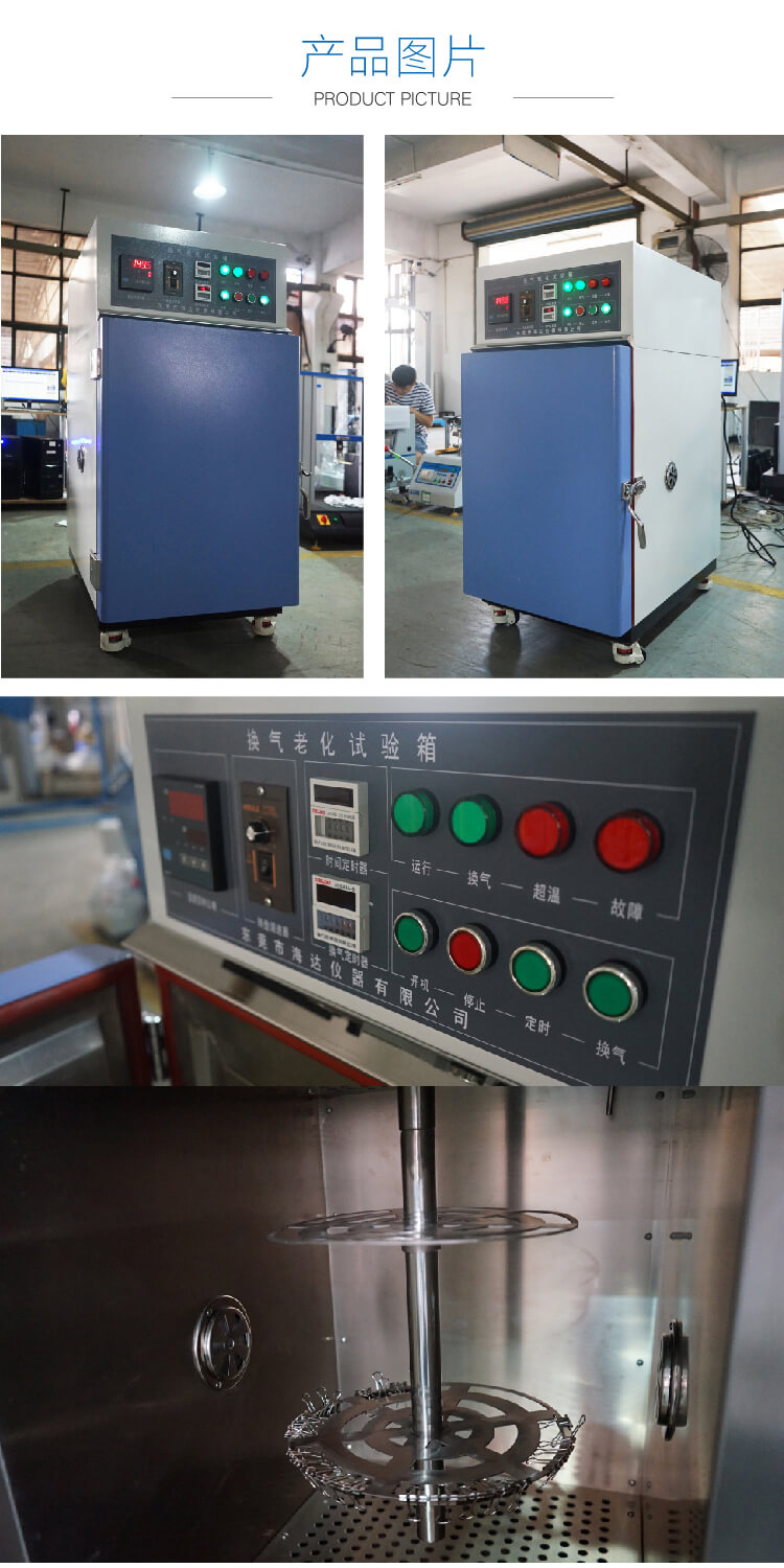 換氣老化試驗機適用于電線類、皮類、塑料類、橡膠類、布類等受熱前和受熱后變化特性。針對電線類在受熱時為維持箱內(nèi)新鮮的空氣,故特制換氣量的調(diào)節(jié)。