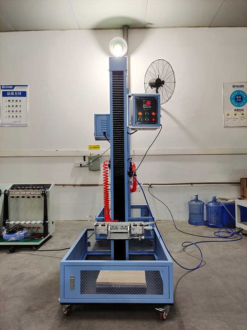 該產(chǎn)品針對適用于行動電話(手機(jī))、手機(jī)鋰電池、對講機(jī)、電子詞典、CD/MD/MP3等小型消費類電子制品及零部件之自由落下試驗。 本機(jī)采用氣動結(jié)構(gòu),將被測試件置于專用夾具(可調(diào)行程)夾牢,按下跌落鍵,氣缸松開,試件將作自由落體試驗,跌落高度可作上下調(diào)整,并附有高度標(biāo)尺,可得知試件跌落高度,多種跌落地板供選用,可滿足不同試驗標(biāo)準(zhǔn)。
