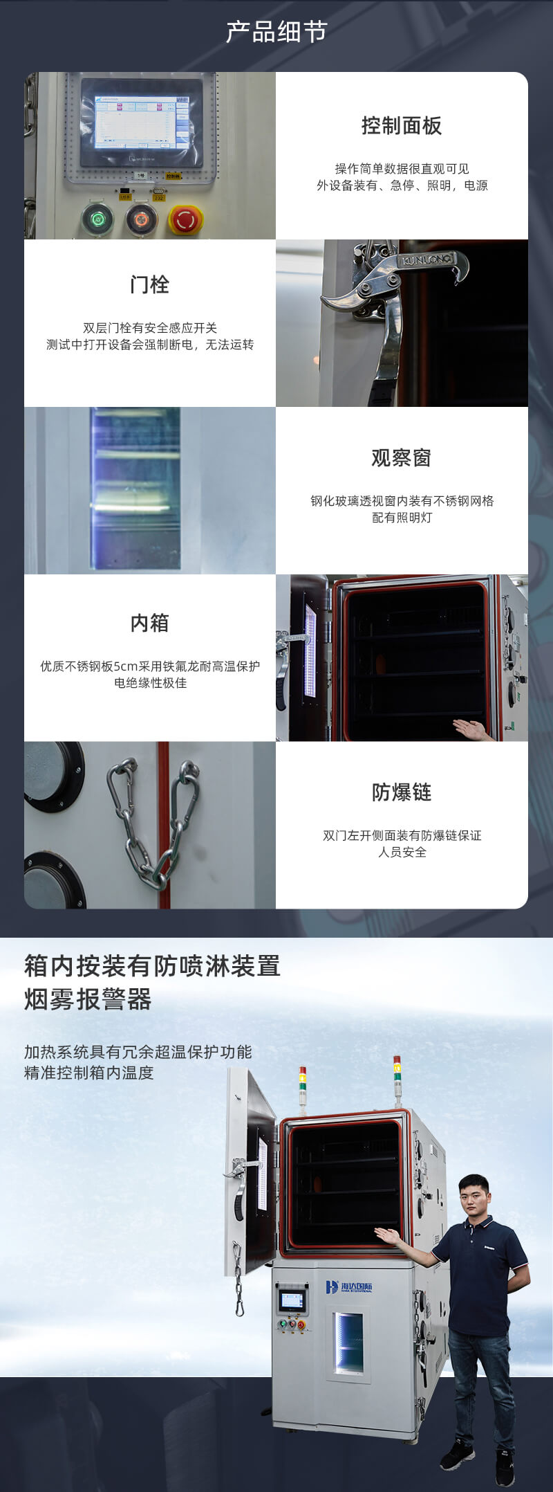 電池防爆試驗(yàn)箱主要用于電池進(jìn)行過充過放,充放電測試中,將電池置于防爆箱中,外接充放電測試儀中,為操作人員及儀器進(jìn)行保護(hù),本機(jī)測試箱體可根據(jù)測試需求進(jìn)行定做。